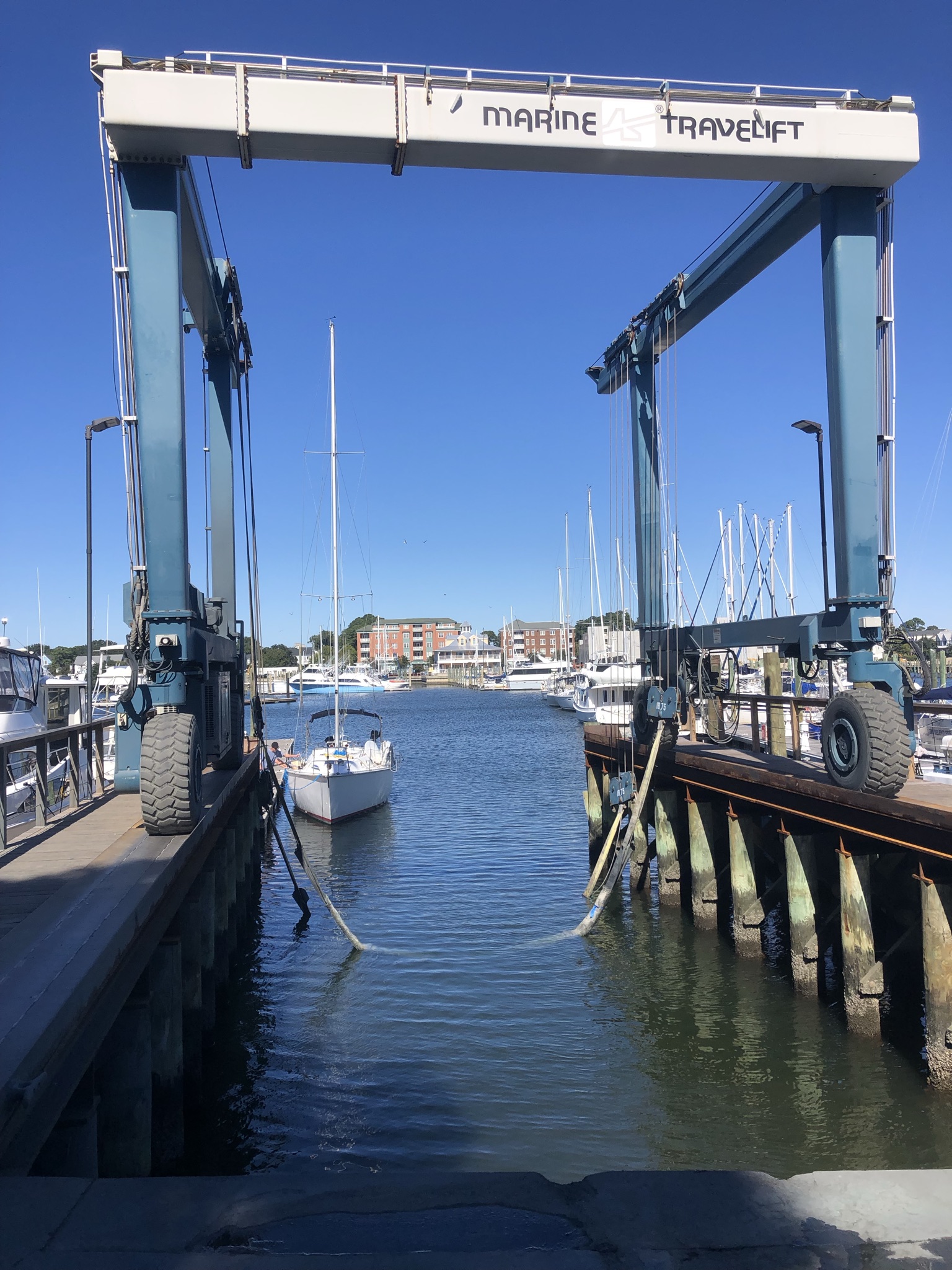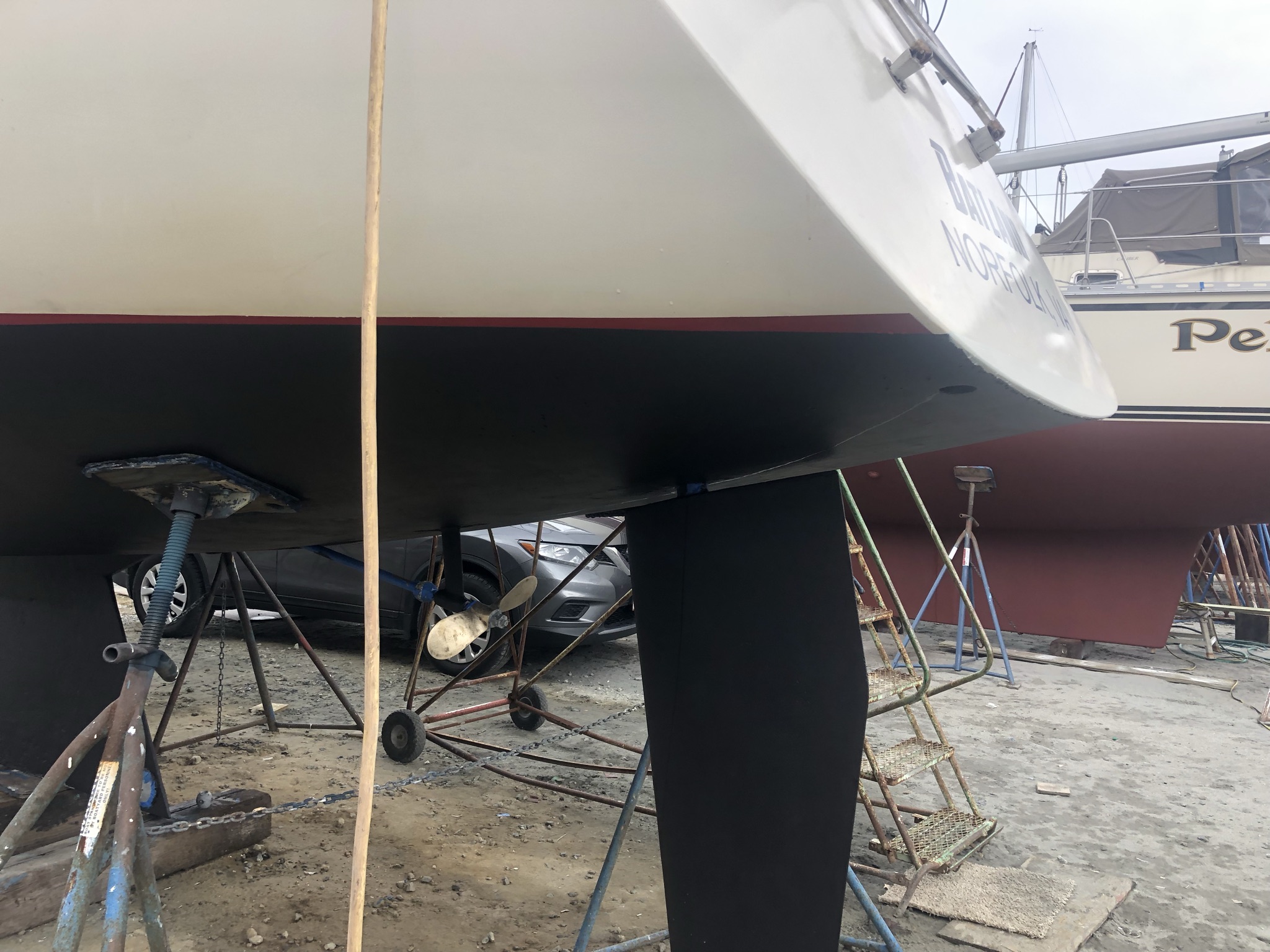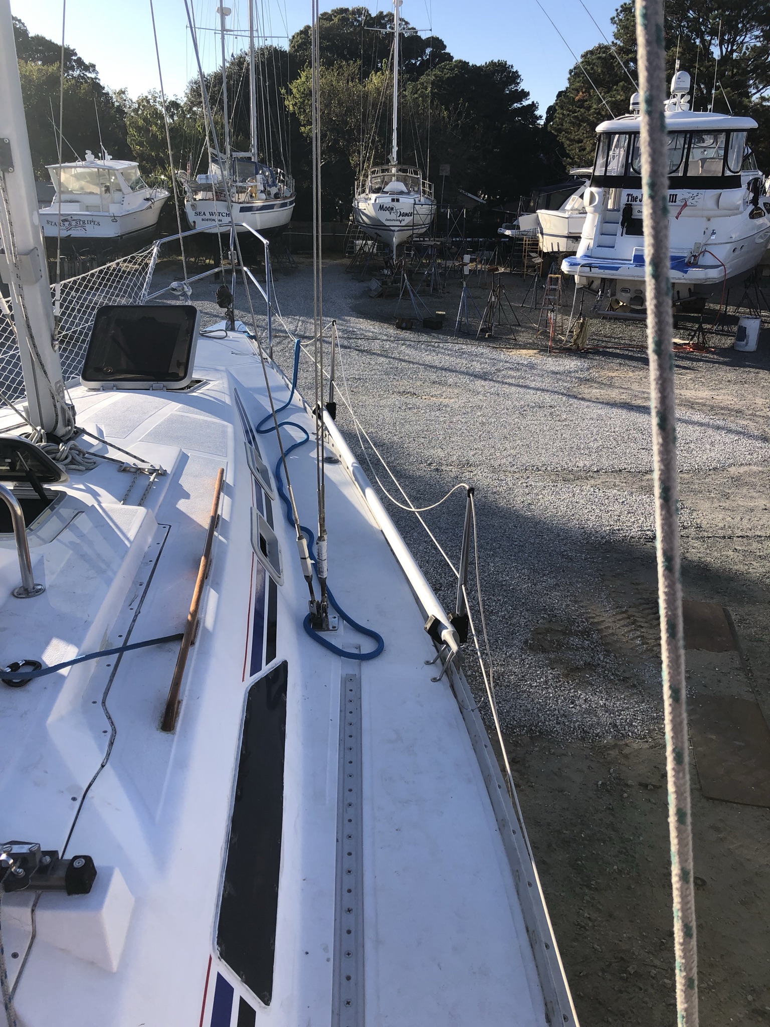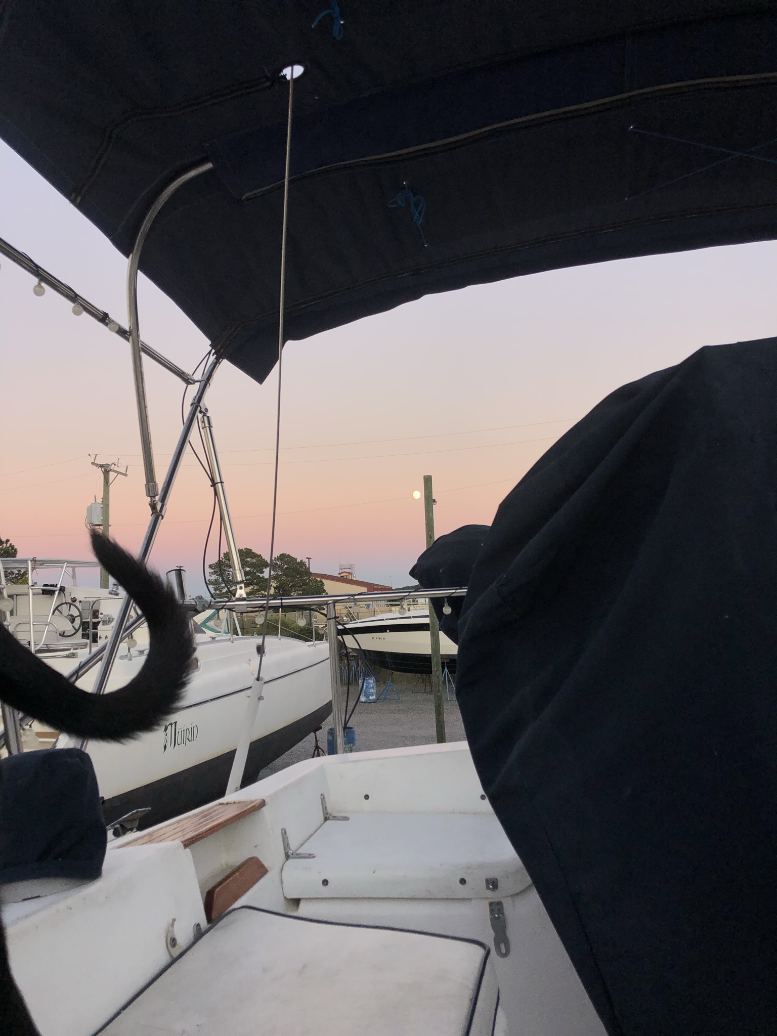 When you’re on the hard, you are almost never barefoot because you have to wear shoes when walking around, painting, etc. Therefore, all of the dirt that gets stuck on your shoes gets tracked through the boat. I don’t think our cockpit, nor the saloon floor has ever been so dirty. We vacuumed multiple times but it really wasn’t worth it, so once we got back to our slip the shoes came off and the soap and scrubbers came out. Let’s just say it’s a lot cleaner than it was a few days ago, thank goodness.