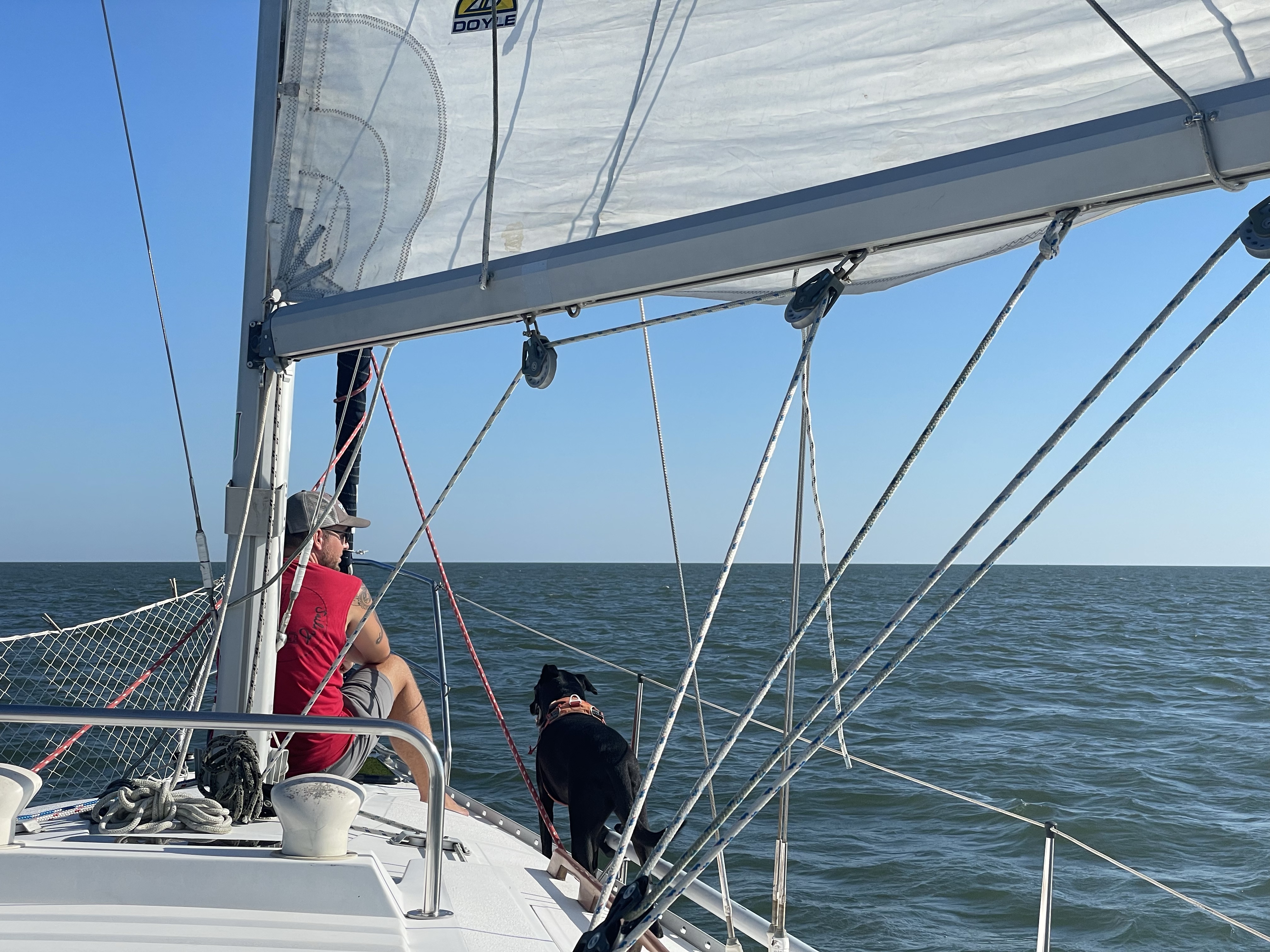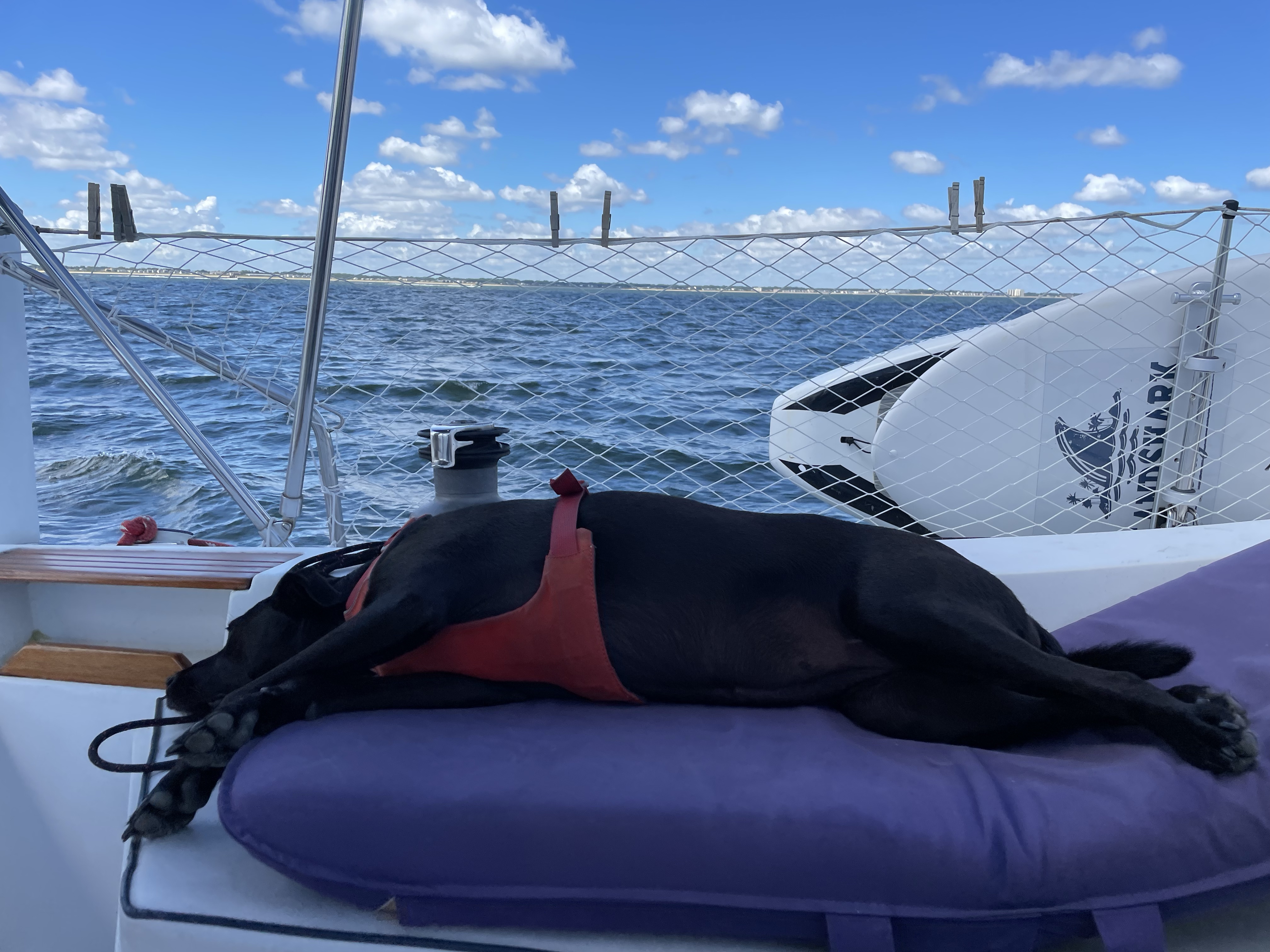 This isn’t a mishap, but it’s definitely a victory in our book: Buoy finally peed on her doggy turf! We’ve been trying to teach her, but I had a feeling it was just going to take one time and then maybe she’d have it down! We were so close to Urbanna, less than 1 nautical mile out, and she went up and used the turf! We positively affirmed her a lot, so fingers crossed she remembers that’s what it’s for next time! Go Buoy!