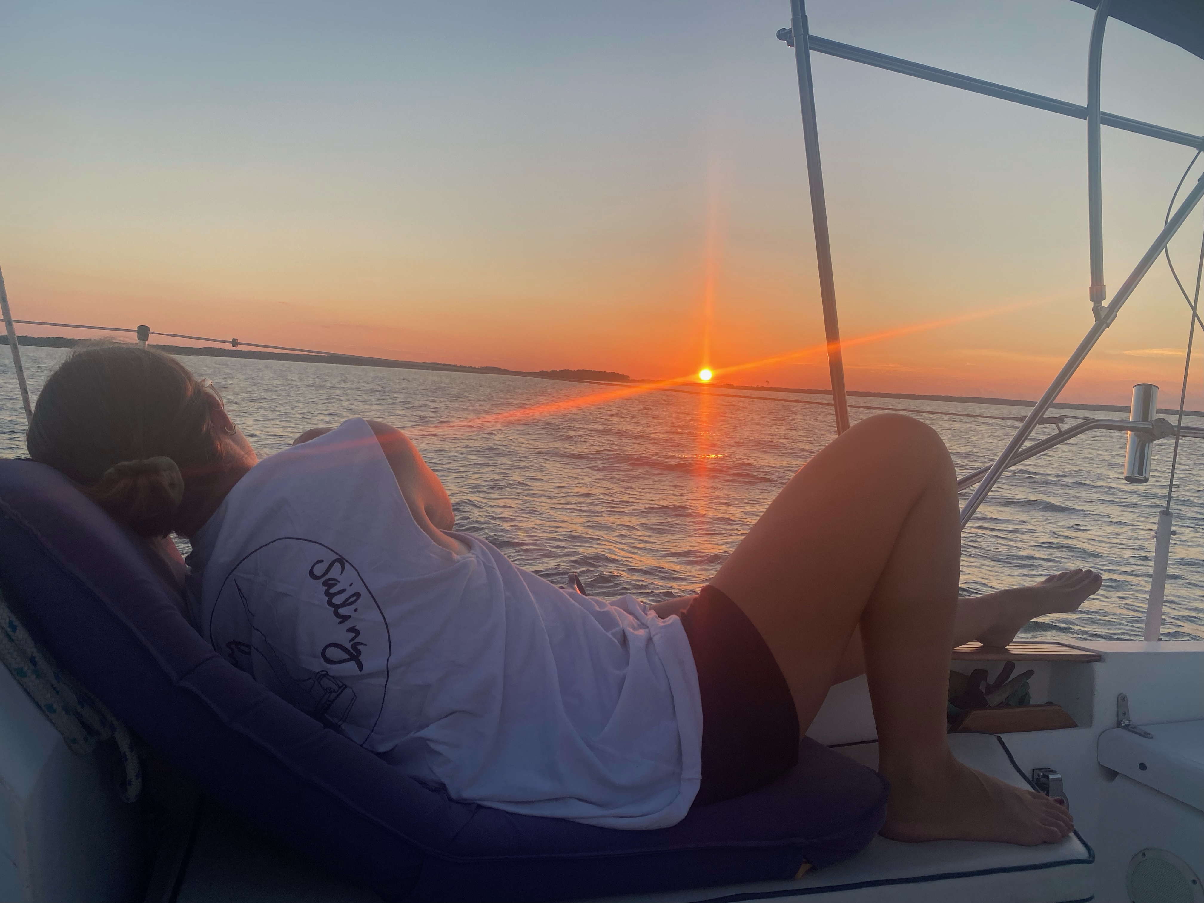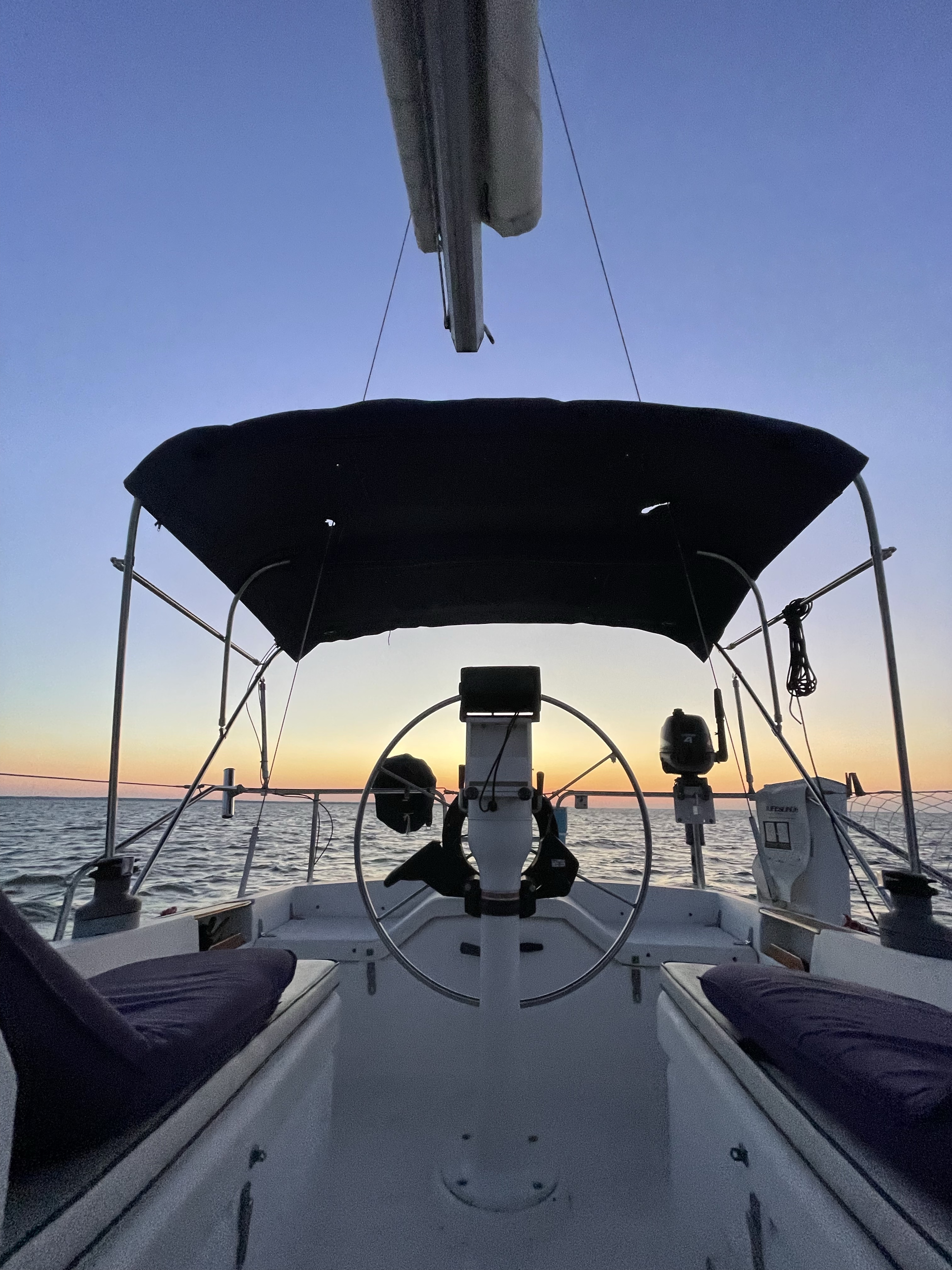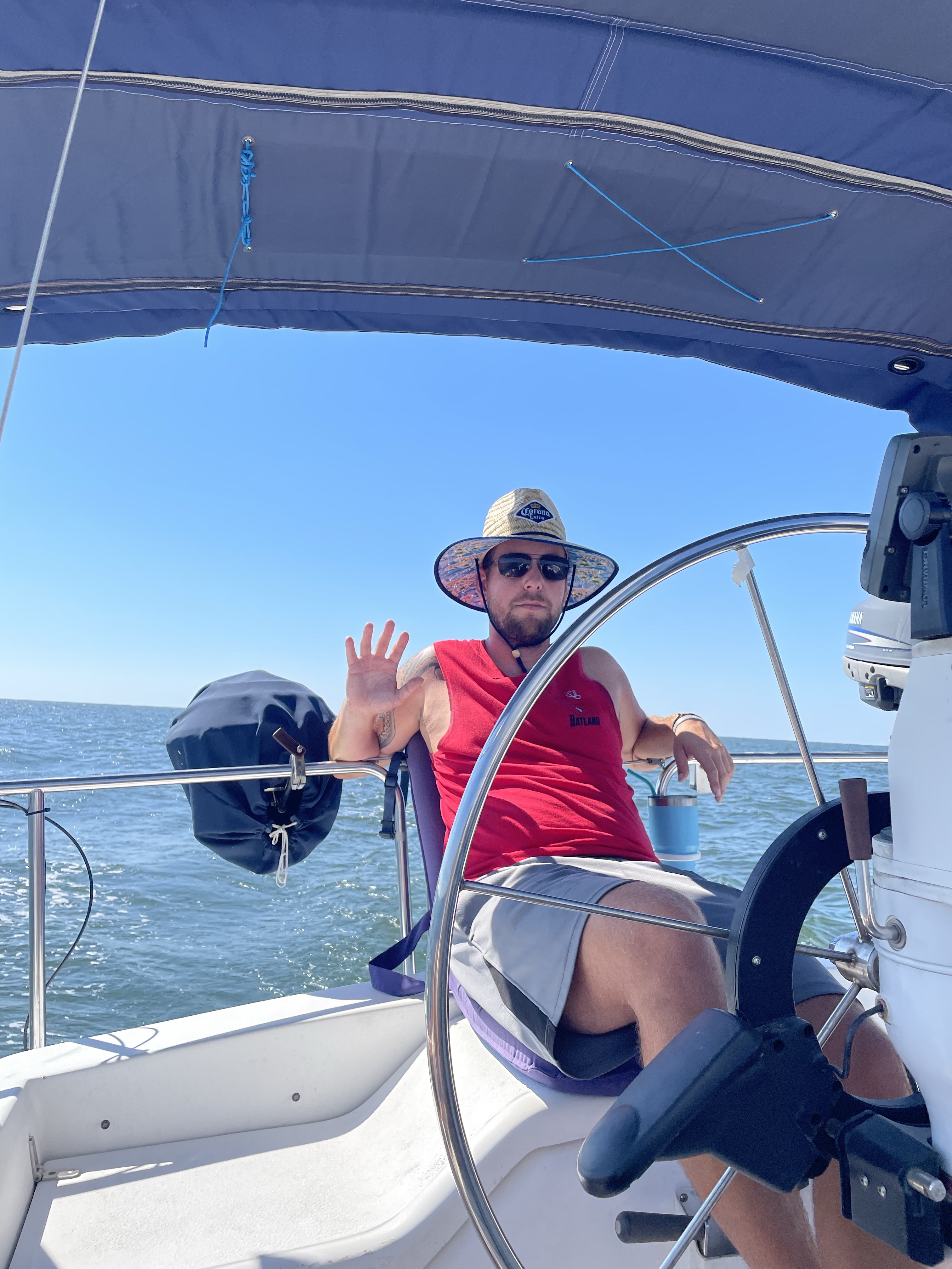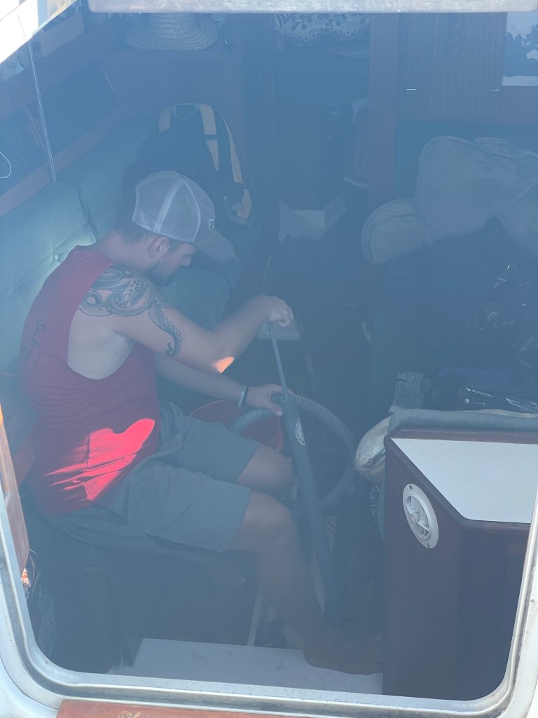Another thing that came up was the engine overheated. (YIKES) This was a bit scarrier to me, but it was solved quickly. We turned the engine off and let it sit, while trying to sail with the wind on our nose. It wasn’t the smoothest sail, but Steve decided that he wanted to check on a few things with the engine. After realizing that everything in the water filter looked fine, he checked other areas and found that a belt had snapped. Steve, being Steve, had a backup belt and put it back on and boom! We had a working (and not overheated) engine!