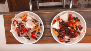 For this one, you should add all of the beans to one bowl. Then chop up the mangoes, cilantro, habanero peppers and/or onions (if desired). Add that to the same bowl. Squeeze the limes into the bowl and mix! Pair with your favorite chips, add to a taco, or sprinkle on top of chili. Easy and delicious!